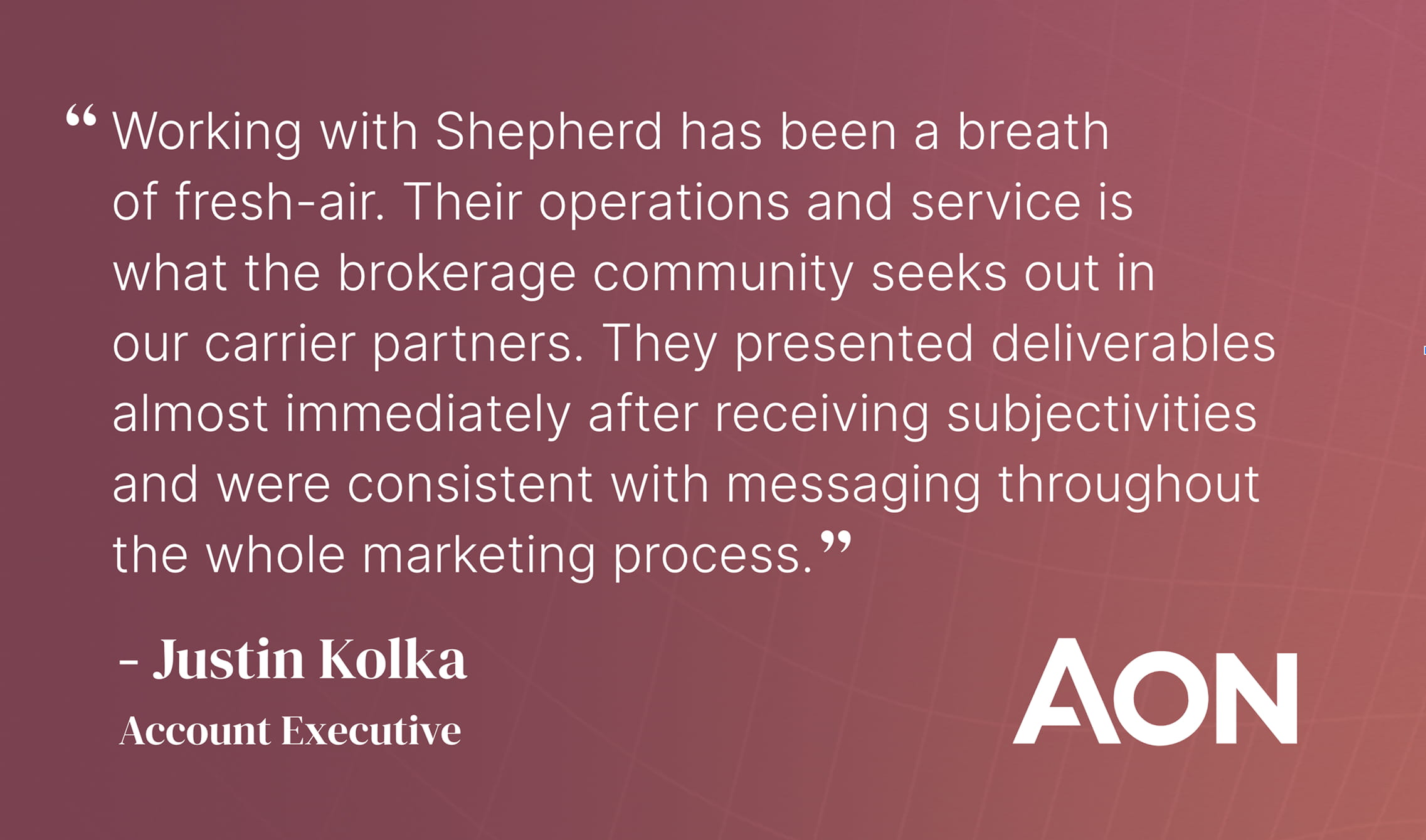 In formulating the idea of Shepherd, we always knew that technology would unlock a speed advantage in our underwriting. While other carriers tend to respond to brokers in anywhere from 5 days to several weeks (mostly due to clunky workflows and disconnected internal systems), we promised from the day we launched that every submission sent to Shepherd would receive a written indication back to the broker within 24 hours. For the first 100 submissions we received, the response time from our underwriting team has averaged less than 14 hours. The feedback to this has been overwhelmingly positive. We often receive emails and phone calls like this from our broker partners: